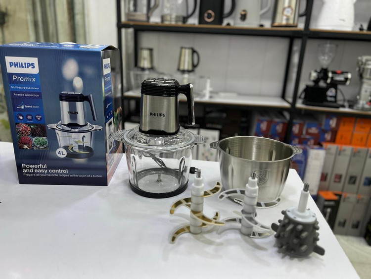 حجم ظرفیت خردکن : دوعدد کاسه ۴+۴ لیتری: تعداد تیغه : ۶ تیغه تیتانیوم طلایی همراه با ۶ تیغه زاپاس